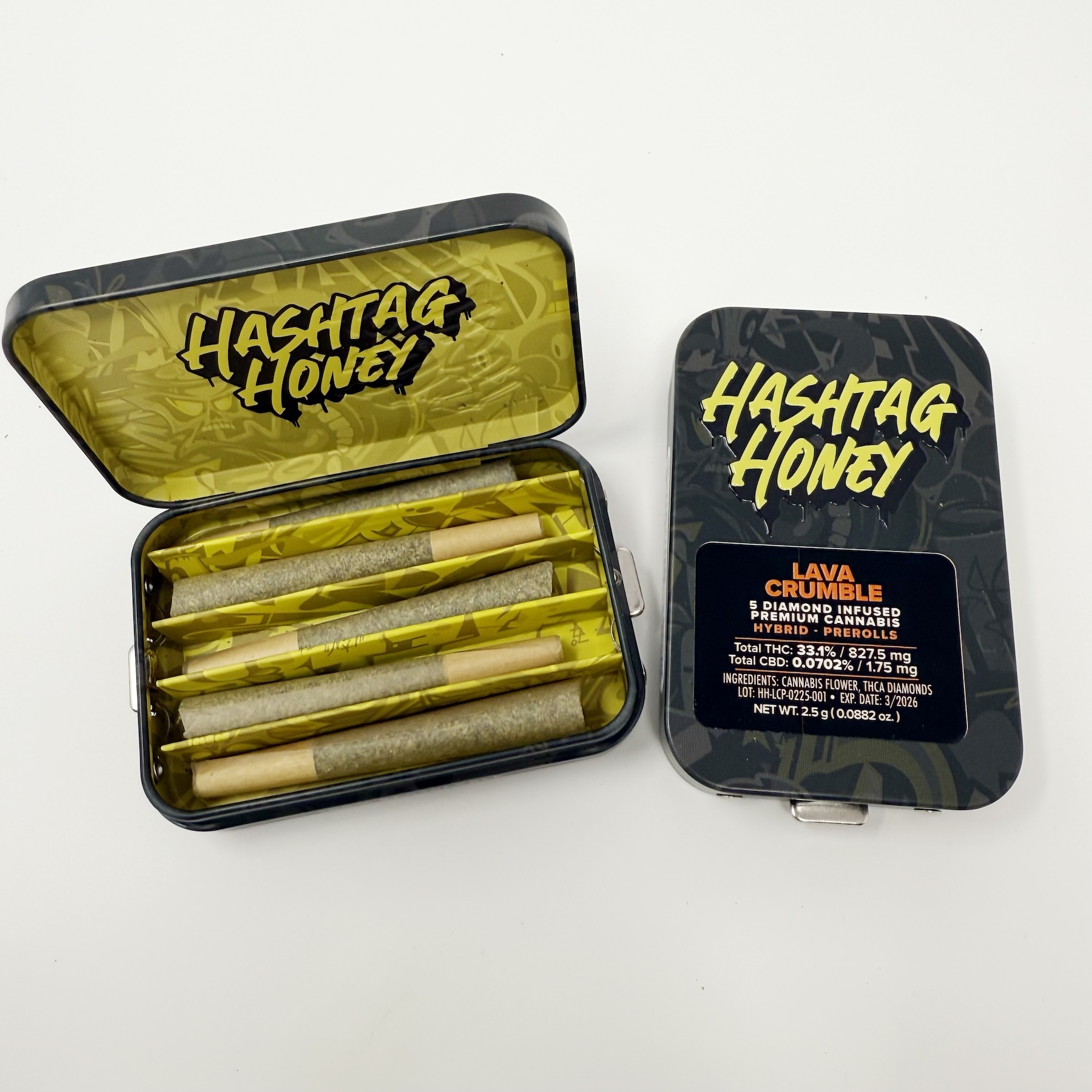 Ultimately, Hashtag Honey Lava Crumble 0.5g Diamond Infused Pre-rolls 5pk Hybrid 30% THC provide a refined cannabis experience. With diamond-enhanced potency, smooth flavor, and dependable effects, every detail is designed for enjoyment. Whether used for relaxation, creativity, or socializing, this 5-pack delivers a high-THC hybrid experience that is balanced, flavorful, and consistent.