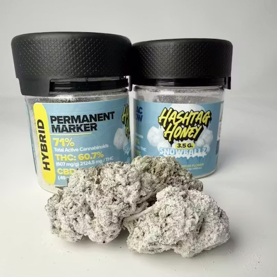 Overall, Hashtag Honey Permanent Marker Snowballz 3.5g Hybrid Flower delivers bold flavor, elite potency, and exceptional quality. With 60.7% THC and verified lab testing, it offers a powerful yet refined hybrid experience.